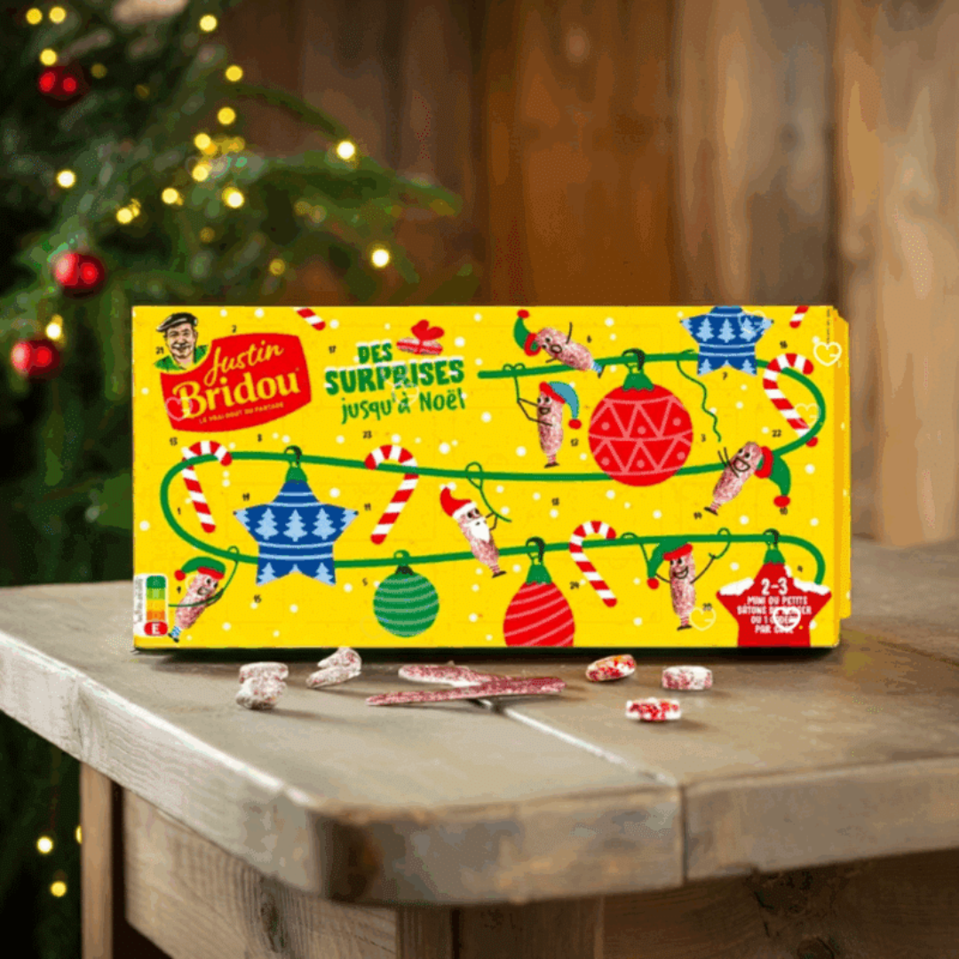 Cette année encore Justin Bridou revient avec un nouveau calendrier de l’Avent Saucisson rempli de charcuteries et de goodies !